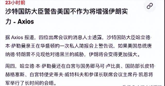 在这里,我们看到了一个诡异的战略对齐。特拉维夫的内塔尼亚胡在明处高声叫阵,利雅得的哈利德在暗处低语怂恿。虽然他们信的神不一样,但在“希望美军动手”这件事上,他们达成了惊人的默契。