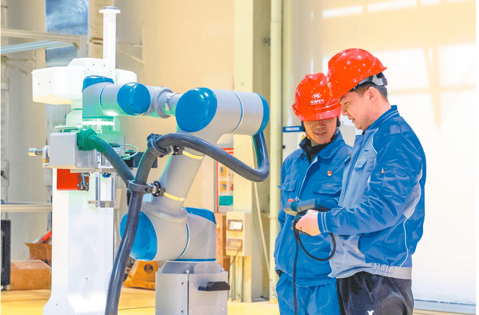 平高新松电力智能装备(河南)有限公司技术人员调试自主研发的开关室复合机器人(资料图 王尧/摄 )