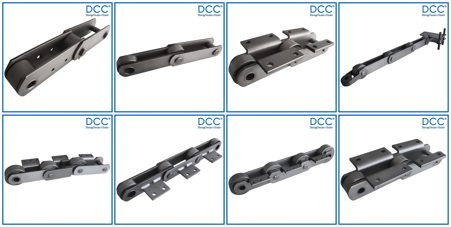 公司主要产品为标准滚子链、工程链(输送链)、冷拨机链、焊接链、模锻链、铸造链、板式链等系列,共三百多个品种、1000多个大、中规格的链条。其所有零件都是内部生产,确保了更低的成本和质量控制。由MES安排和管理生产,严格保证交货期。精良专业的机器设备,生产出高品质的链条。
