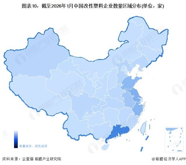 从企查猫以“改性塑料”为关键词进行精确搜索,得到改性塑料企业区域分布。从我国改性塑料产业链企业区域分布来看,改性塑料产业链企业主要分布在广东,其次是在江苏、山东、浙江、安徽等地区;其余地方,如新疆等省市虽然有企业分布,但是数量较少。